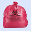 Red biohazard bags are used to collect anatomical waste including human body fluids like semen, saliva, tissues, organs, and animal carcasses. They are also used to dispose of the medical apparatus, specimen swabs, blood-soaked drapes, gloves, and anything that is visibly contaminated with blood or bodily fluids.